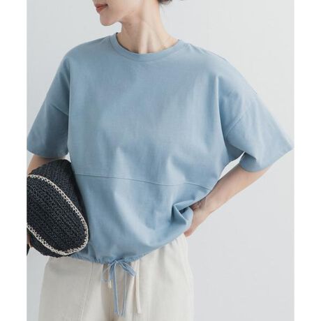 裾にドロスト紐をあしらったプルオーバーカットソーは、リボンでシルエットの調節ができるデザイン。
