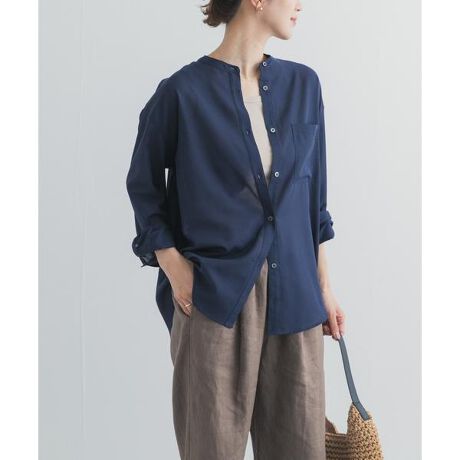 夏にうれしい機能付き、シアーバンドカラーシャツ