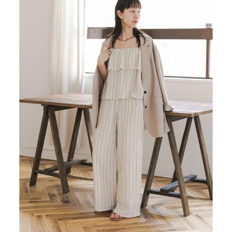 軽いコットン素材にストライプ柄をのせた、キャミソールとイージーパンツのセットアップが登場しました。