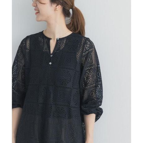 長袖デザインながら、レース素材ならではの軽やかさと清涼感が魅力です。