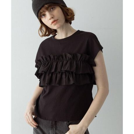 フリルは同色でそろえた薄手のブラウス地を使用、さらっと着るだけでまるで重ね着のように見えるデザインはこれからの季節ヘビロテ間違いなし。