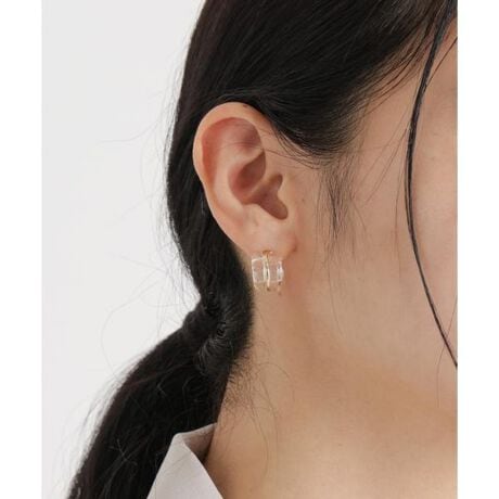ゴールドパーツがクリア素材に反射して独特の光沢感を演出する異素材コンビのピアス。透明感のある軽やかなデザインが、暑さが増すこれからの季節に最適です。