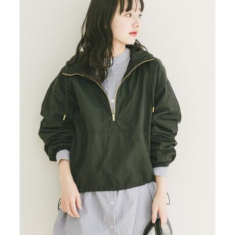 トレンドのハーフジップデザインを取り入れたフーディーブルゾンは、ジップの開け方次第で表情を変えられるのが魅力。ゆとりのあるワイドシルエットで、スウェットやニットの上からでもさっと羽織れ、抜け感のある着こなしが完成します。カンガルーポケットや袖口のゴム仕様など実用性も備えつつ、肌なじみの良いカラーで、スポーティーながらも女性らしく上品な印象に。大人カジュアルにぴったりの一着です。ここに入力