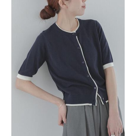 クールミスト配色クルーネックカーディガン