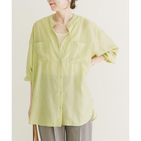軽やかな透け感で魅せる、シアーバンドカラーシャツ