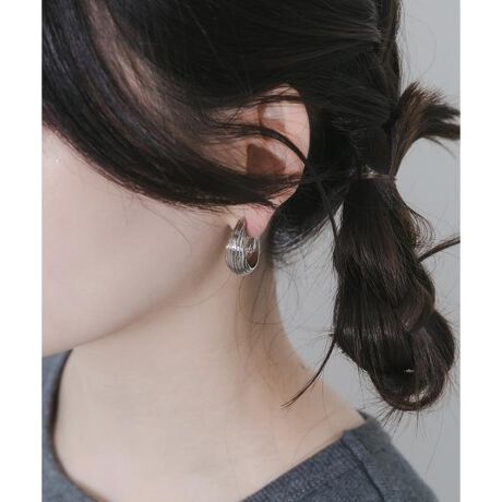メタルに施された細やかなラインがアクセントになったフープイヤリング。
