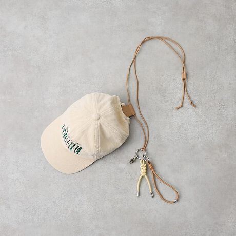 スマートフォンやメガネなど、小物を取り付けて使えるレザーストラップ。