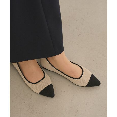 定番型のポインテッドパンプスからシックなバイカラーデザインが登場しました。切替部分がシームレスで柔らかく、足に当たらないのはニットシューズならではの特徴です。汚れやすいトゥ先が黒なので気軽に履いて頂けます。オーセンティックなベージュ×ブラックと、ツイードのような見え感のグレー×ブラックの2色展開です。