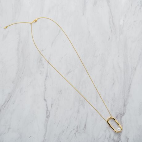 ユニークな凹凸感のあるリングにパールをさりげなくあしらったニュアンス感のあるネックレス。