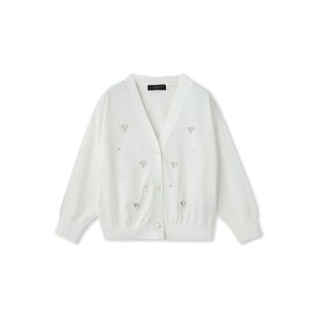 前身頃にパールやクリスタル、ビーズなどのビジューを刺繍し、華やかで少しモードな印象に仕上げています。