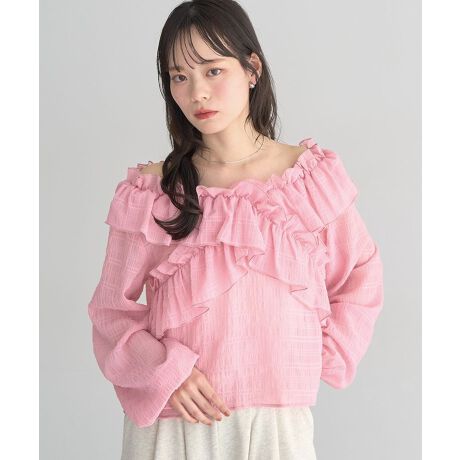 ふんわり揺れて魅せる、大人可愛い2wayブラウス軽やかなシアー素材に繊細なチェック柄を重ねた、やさしい雰囲気のブラウスです。程よい透け感が抜け感を演出し、シーズンらしい軽やかな着こなしを叶えます。オフショルダーとしても着用できる2way仕様で、その日の気分やシーンに合わせてスタイルチェンジが楽しめるのも魅力です。フロントのフリルデザインが顔まわりを華やかに見せ、自然と女性らしい印象に導きます。ふんわりとしたシルエットは体型をさりげなくカバーしつつ、リラックス感のある着心地です。デニムからスカートまで幅広く合わせやすく、日常使いにもお出かけにも活躍する一枚です。透け感[ややあり]