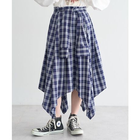 軽やかなチェック柄に、動きのあるイレギュラーヘムが印象的なデザインです。シャツを腰に巻いたようなディテールがコーディネートのアクセントになり、シンプルなトップスと合わせるだけでこなれたスタイルが完成します。ウエストはゴム仕様でリラックス感があり、快適なはき心地です。ふんわりとしたシルエットが気になるラインをさりげなくカバーしつつ、揺れ感で女性らしさも演出します。カジュアルからきれいめまで幅広く対応でき、季節を問わず着回しやすい一着です。