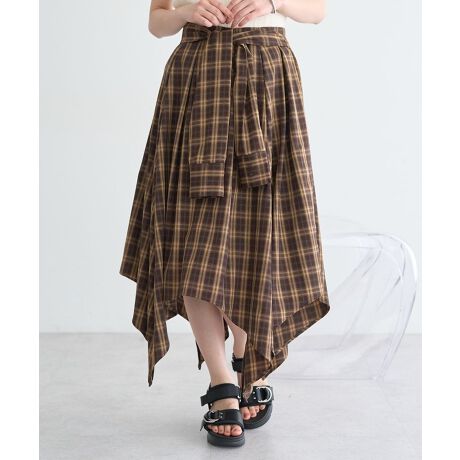 軽やかなチェック柄に、動きのあるイレギュラーヘムが印象的なデザインです。シャツを腰に巻いたようなディテールがコーディネートのアクセントになり、シンプルなトップスと合わせるだけでこなれたスタイルが完成します。ウエストはゴム仕様でリラックス感があり、快適なはき心地です。ふんわりとしたシルエットが気になるラインをさりげなくカバーしつつ、揺れ感で女性らしさも演出します。カジュアルからきれいめまで幅広く対応でき、季節を問わず着回しやすい一着です。