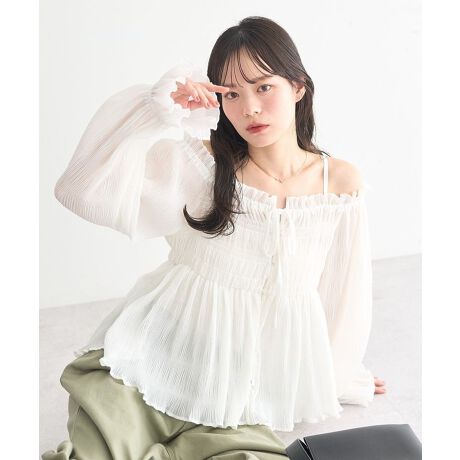 ふんわり揺れる、大人可愛いオフショルブラウスシャーリングとフリルのデザインが女性らしさを引き立て、やわらかく優しい印象を演出してくれるブラウスです。オフショルダーとしても着用でき、デコルテをきれいに見せながら抜け感のあるスタイルが楽しめます。軽やかな素材感で動くたびにふんわりと揺れ、シンプルなボトムと合わせるだけで華やかなコーディネートが完成します。ゆとりのあるシルエットで体のラインを拾いにくく、リラックスした着心地も魅力です。デイリー使いはもちろん、お出かけや特別なシーンにも活躍します。透け感[ややあり]