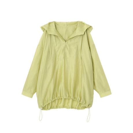 程よいハリと落ち感を兼ね備えた素材が、着るだけで自然なドレープを生み出し、こなれた印象に仕上げてくれます。ゆったりとしたフォルムで動きやすく、長時間の着用でもストレスを感じにくいのが嬉しいポイントです。フードデザインがカジュアルな雰囲気を添えつつ、シンプルながらも洗練された印象に導きます。裾のドローコードでシルエットに変化をつけることで、コーディネートの幅も広がります。デニムやスラックス、スカートなど様々なアイテムと相性が良く、日常使いからお出かけまで活躍する一枚です。