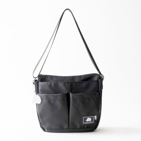スクエア形のショルダーバッグで、500mlのペットボトルが縦にすっぽりと入る収納力。