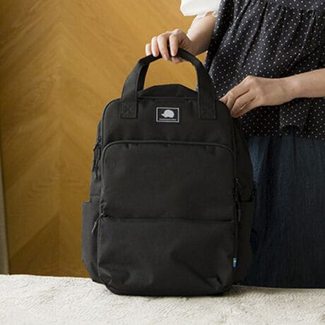 素材は厚手のポリエステルで、やわらかな雰囲気を醸し出す杢調(もくちょう)生地を使用 ハリがあって硬く、荷物が少ない日でもカタチが潰れにくく軽量だから普段使いしやすいリュックです。