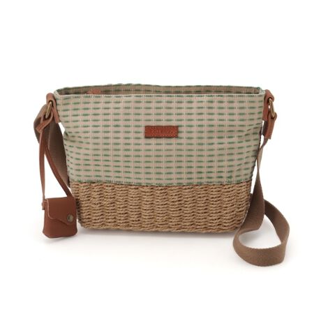 編み込んだペーパーと特徴のあるボーダー柄の生地を組み合わせています。