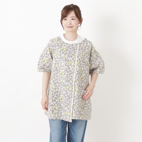 新スタイルのかっぽう着はフレアの五分袖仕様で脱ぎ着がしやすく動きやすいデザインです。