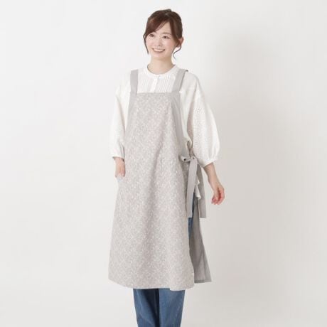 サイドのリボンが特徴で、着心地の良いエプロンです。