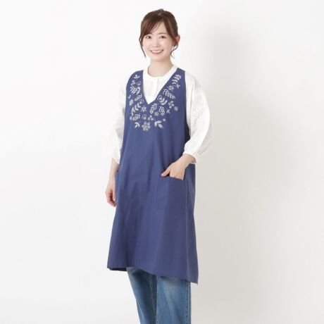 胸元が華やかになるよう野花やリーフをあしらった刺繍エプロンです。