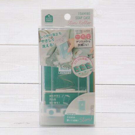 せっけんケースのままコロコロ動かすだけ!先端に柔らかい樹脂製のローラーが付いているので、生地を痛めにくく、しっかり汚れ落としができる。