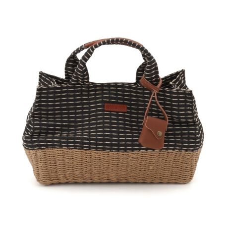 編み込んだペーパーと特徴のあるボーダー柄の生地を組み合わせています。