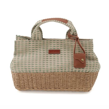 編み込んだペーパーと特徴のあるボーダー柄の生地を組み合わせています。