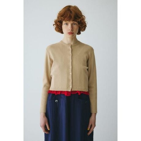 2種類の糸を使用したUVカット機能のついたニットカーディガンシンプルな形ですが、裾がややフリルになっているのがポイント。裾はあえて違う糸を使うことで表面感の違いも出て1枚でおしゃれなカーディガンに仕上げました。日差しの強い外や冷房対策で室内など様々な場面で重宝する1枚です。遮熱性・UVカット性・吸水速乾性がある高機能糸:Somarti(ソマルティ)で編み立てたニット素材です。裾のフリル部分は、シアーのニット素材でアクセントを施しています。ダブルヘムニットカーディガン[注意事項] ※画像の商品はサンプルです。実際の商品と仕様、加工が若干異なる場合があります。 ※画像の商品は光の照射や角度、お使いのモニター環境により、実物と色味が異なる場合がございます。 ※着用、お取り扱いの際は、アテンションタグをご確認ください。