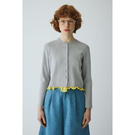 2種類の糸を使用したUVカット機能のついたニットカーディガンシンプルな形ですが、裾がややフリルになっているのがポイント。裾はあえて違う糸を使うことで表面感の違いも出て1枚でおしゃれなカーディガンに仕上げました。日差しの強い外や冷房対策で室内など様々な場面で重宝する1枚です。遮熱性・UVカット性・吸水速乾性がある高機能糸:Somarti(ソマルティ)で編み立てたニット素材です。裾のフリル部分は、シアーのニット素材でアクセントを施しています。ダブルヘムニットカーディガン[注意事項] ※画像の商品はサンプルです。実際の商品と仕様、加工が若干異なる場合があります。 ※画像の商品は光の照射や角度、お使いのモニター環境により、実物と色味が異なる場合がございます。 ※着用、お取り扱いの際は、アテンションタグをご確認ください。
