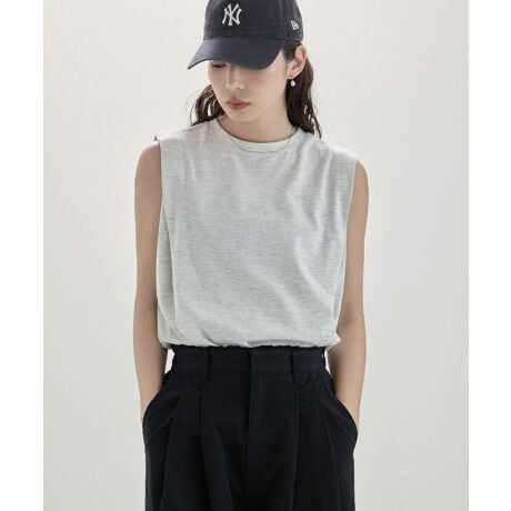 etoll. エトル 構築的なタックデザインでどことなくモードなノースリーブTシャツ。