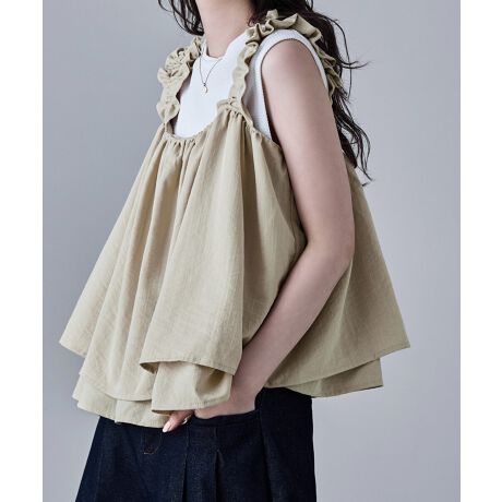 etoll. エトル リネンタッチの軽やかな素材感がボリュームをつくる、甘めデザインのフレアトップス。