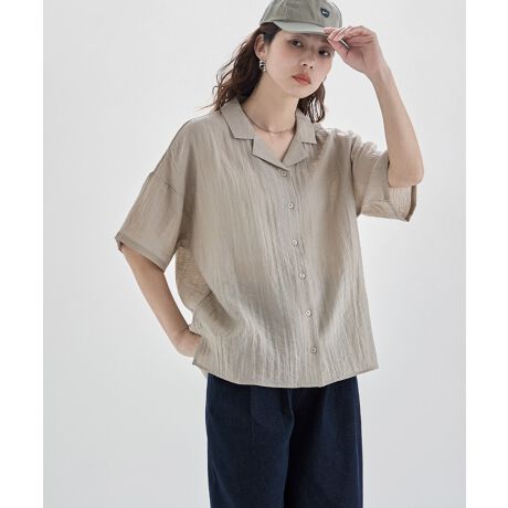 デコルテがのぞく開襟タイプで清涼感もあり、着崩してないのにリラクシーさを感じる1枚で暑い日でも快適です。