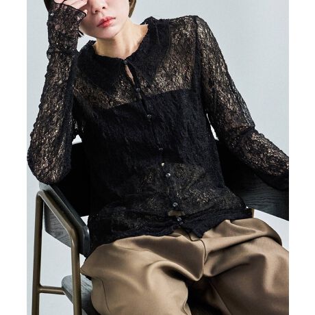 Fashion Letter ファッションレター 涼しげな透け感とタイトなシルエットがトレンドライクなレースシャツ。