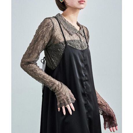 シアーレース長袖ブラウス