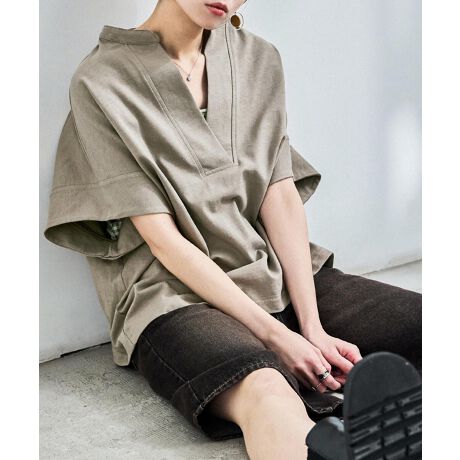 Fashion Letter ファッションレター ゆったりしたルーズなサイズ感と、首元のスキッパーデザインが新鮮なTシャツ。