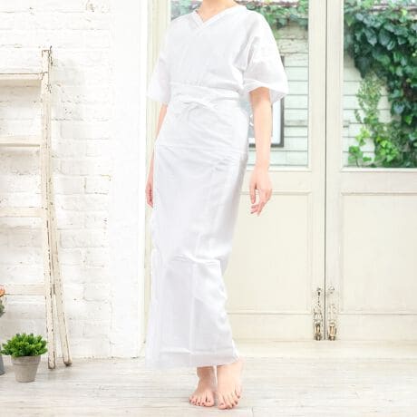 肌着は襟まわりはワイドな開閉で、アップしたヘアスタイルを崩さず着脱が可能です。