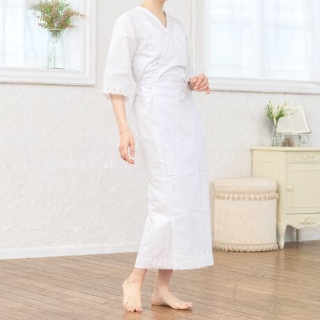 着付けの際に最初に着る肌襦袢と裾除けを合わせて一枚にしたワンピースタイプの肌着です。
