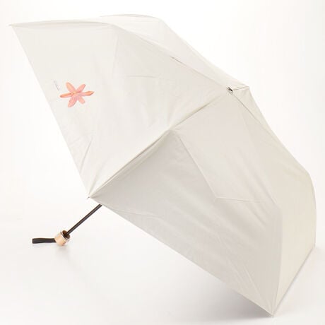 花やフルーツの写実的なプリントに、“I love flower”の手描き文字刺しゅうが映える晴雨兼用傘。開閉しやすいクイックオープン式の骨を採用し、出し入れしやすい持ち手付きのセミワイド袋で持ち運びも快適です。遮光率・UVカット100%の高機能仕様に加え、親骨55cmの大きめサイズで強い日差しをしっかりとガードします。