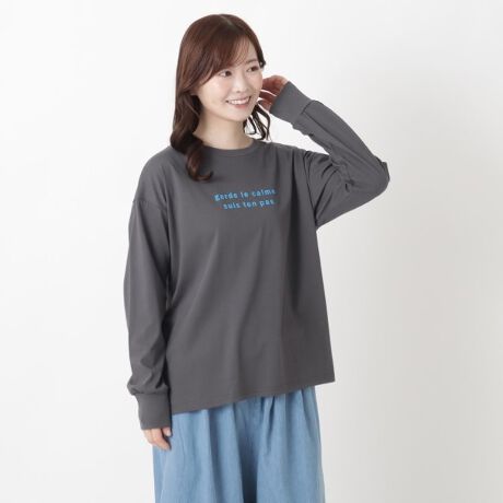アクセントになるロゴプリントカラーが、コーディネートのポイントに。
