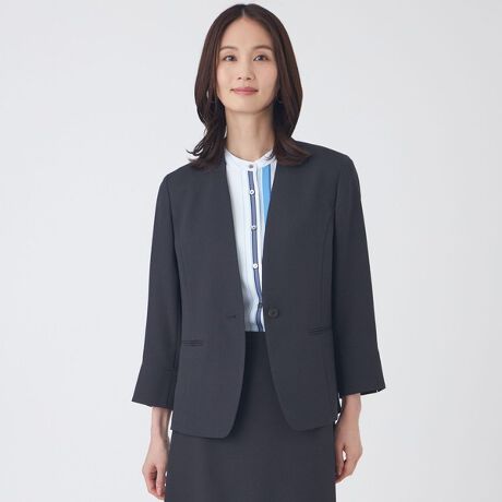 軽量さと快適な着心地が魅力のノーカラージャケットです。
