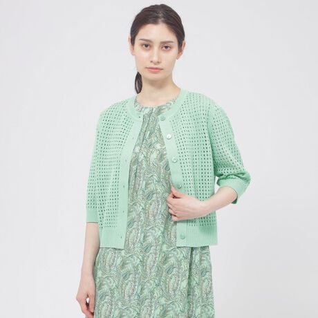 [型番:K1N22734__]【素材】清涼感のある軽やかな素材を使用したカーディガンです。紙特有のドライなタッチと、通気性の良さが特徴です。さらっとした肌離れの良い着心地です。ご自宅で手洗いできるイージーケアも嬉しいポイントです。