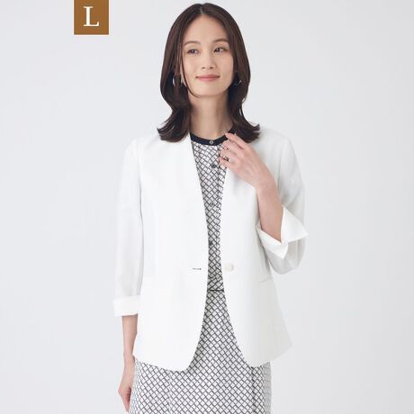 【L】【UV対策・着用じわ軽減・ウォッシャブル】エアリーコードレーンノーカラージャケット