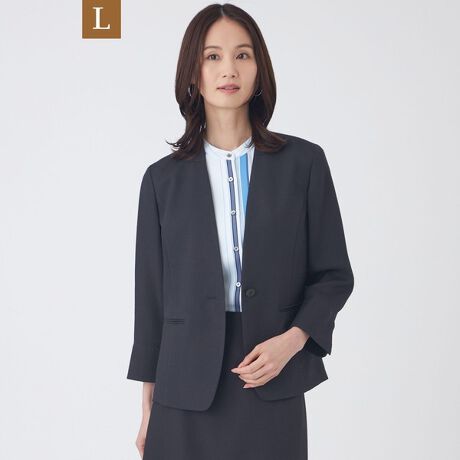 【L】【UV対策・着用じわ軽減・ウォッシャブル】エアリーコードレーンノーカラージャケット