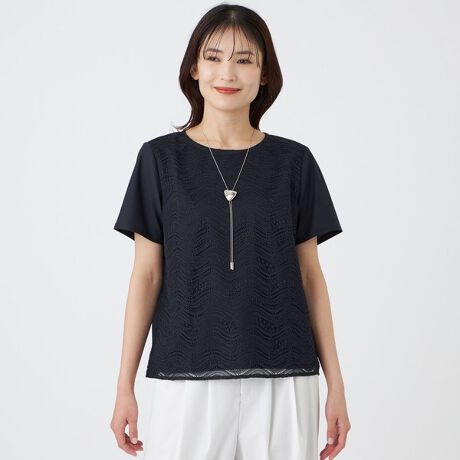■前身頃にレースを使用した、高級感のある半袖カットソー