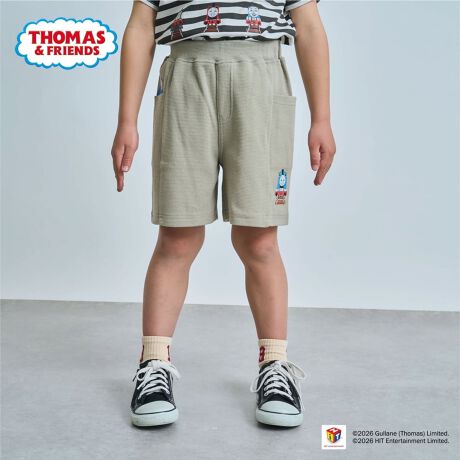 ポケットから覗く機関士や、裾のトーマスのプリントが遊び心満載のハーフパンツです。