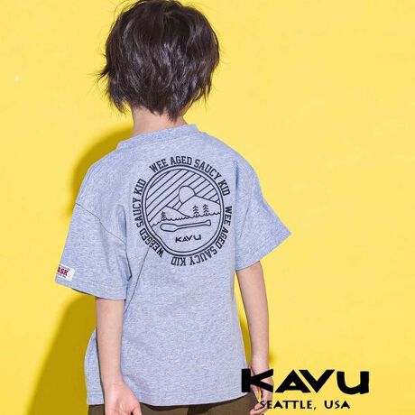 KAVUの既存Tシャツをベースに、胸元ロゴ・バックのサークルロゴ・袖の織ネームにWASKならではのアレンジで加えた特別仕様のプリントデザイン。