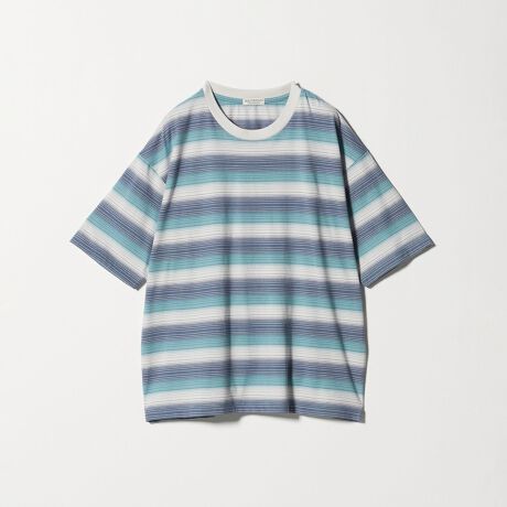 落ち着いた配色と細かなオンブレ柄により、主張しすぎず品よくまとまるボーダーTシャツ。
