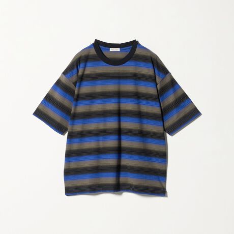 落ち着いた配色と細かなオンブレ柄により、主張しすぎず品よくまとまるボーダーTシャツ。