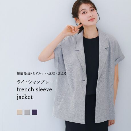 【接触冷感・UVカット・速乾・洗える】ライトシャンブレー・フレンチスリーブジャケット